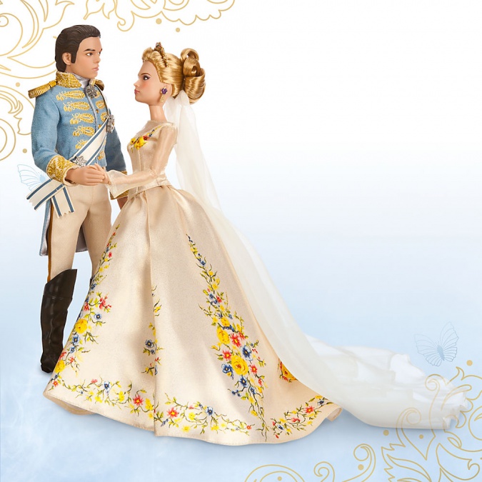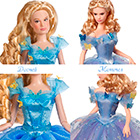 Самые интересные и красивые куклы с героями нового полнометражного фильма "Золушка" выходят в этом году у компаний Mattel и Дисней. Молды лиц кукол сделаны на базе внешности актеров, сыгравших в фильме и у той и у другой компании, так что в целом они немного похожи. Как похожи их платья и даже коробки. Но это не одинаковые копии конечно же. Различия у них есть, и в деталях и в прическах и в оттенках ткани.