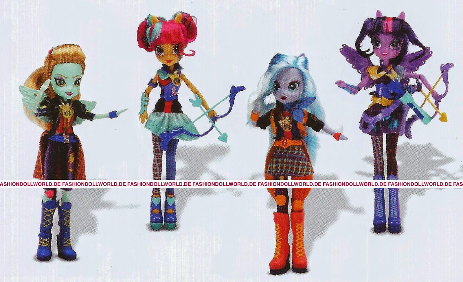 Вондеркольты: Рарити, Пинки Пай, Эпплджек,Флаттершай, Сансет Шиммер и Рэйнбоу Дэш. Шэдоуболтс: Твайлайт Спаркл, Шугаркоут ( Sugarcoat), (Соур Свит) Sour Sweet, (Лемон Зетс) Lemon Zest, (Индиго Зап) Indigo Zap и Санни Фрэр ( Sunny Flare).