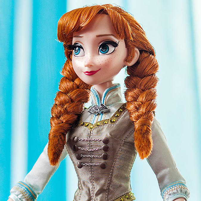 Анна в этой новой версии кукол одета в свой наряд из финальной сцены мультфильма. Она счастлива, свободна, снова обрела сестру, а её юбка сделана как-будто из настоящей шерсти и украшена не менее красивой (чем у Эльзы) вышивкой.