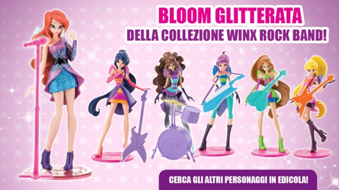 В Италии вместе со 174 номером журнала в подарок идет фигурка Блум из коллекции Winx Rock Band. Эта коллекция фигурок посвящена концертным нарядам девушек из мультсериала Мир Винкс.