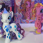 Игрушки, показанные в этом видео немного отличаются от тех, что показали вот в этой новости: ссылка. Например в этом видео мы можем посмотреть на светящихся пони Рарити и Каденс, на пони с прозрачными крыльями, заполненными блестками, на игровой набор с Пинки Пай и тортом, и в этом видео лучше видно новые поп фигурки пони (среди них есть и доктор Хувс).