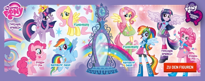 В Европе начали продавать новую коллекцию киндер сюрпризов, посвященную пони из мультсериала "Дружба это Чудо" и Девушкам Эквестрии. Весьма вероятно что эта коллекция дойдет и до России (правда пока не известно как быстро).