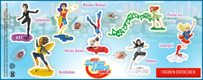 Коллекционерам в Европе как всегда везет чуть больше нас, у них уже вышла новая коллекция игрушек с героинями DC Super Hero Girls в киндер сюрпризах для девочек. Новостей о том что эта коллекция вышла где-то в России или Украине пока нет, но мы очень надеемся что она дойдет и до нас. Потому что это во всех смыслах одна из лучших коллекций в киндерах за последний год.